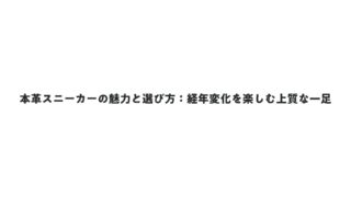 本革スニーカーの魅力と選び方:経年変化を楽しむ上質な一足 本革スニーカーは、天然皮革を使用した上質な素材が特徴で、耐久性と通気性を兼ね備え、日常使いからおしゃれなコーディネートまで幅広く活躍するアイテムです。履き込むほどに足に馴染み、独特の風合いを楽しめるため、多くの人に支持されています。本革スニ... 2026.02.04